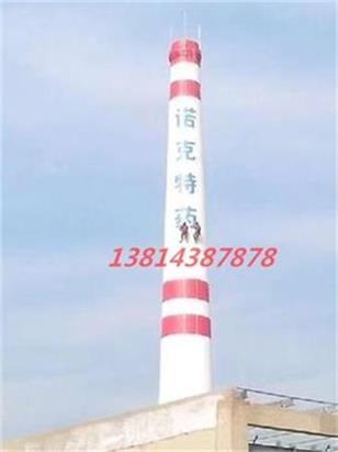 煙囪寫字刷色環施工步驟有哪些?一座50米磚煙囪需要進行寫字刷涂料色環美化施工,在施工前需要參考該煙囪原有設計的相關要求和具體數據。首先準備施工的各項任務所需的工具及材料,然后對煙囪的筒體進行簡單的灰塵清掃。在高空作業吊板作業時要嚴格執行公司制定的相關措施,所采用的吊繩明天都要進行施工前的荷載試驗,高空作業時必須使用主繩和副繩相結合的作業方式。在涂刷色環施工前要做好每道色環的均勻布局力求達到美觀大方的裝飾效果,色環采用紅白相間的錯位搭配,每道色環的高度在3米左右中間間隔白色留底寫字約20米左右,然后下部再涂刷紅白各一道色環進行搭配。字的大小比例為2.6*2.6米,字的上下間隔為0.5米,字體的顏色采用海藍,排列的方式為從上至下。